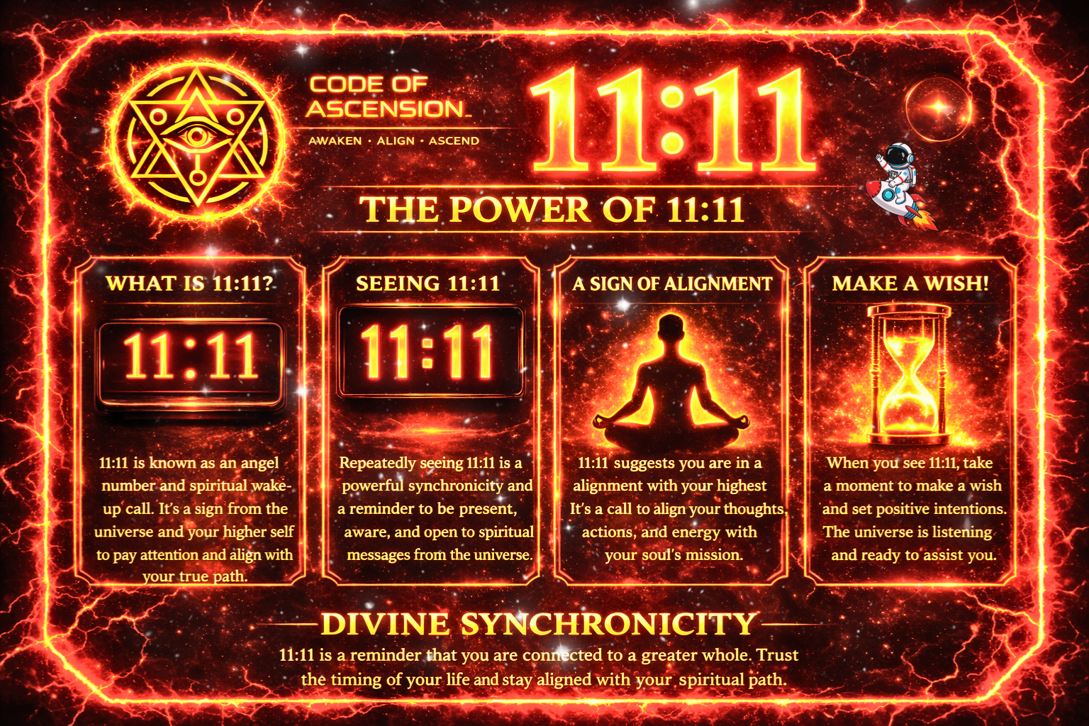 Code of Ascension explores synchronicity, symbolism, manifestation, spiritual protection, and hidden patterns of reality through the lens of awakening consciousness.